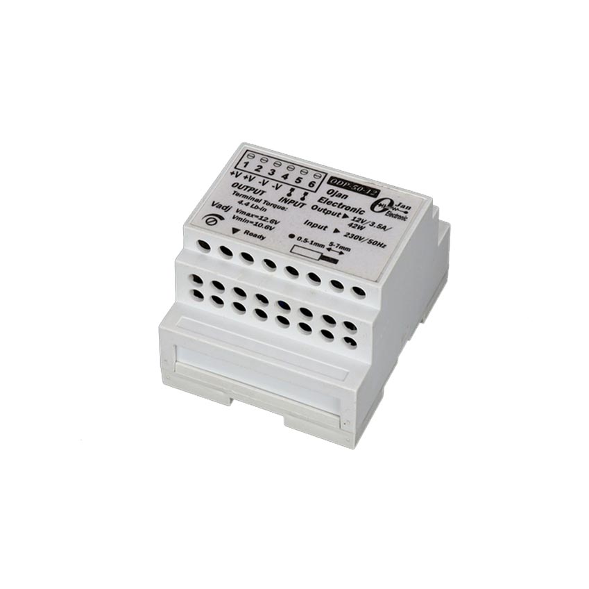 ODP-50 یک منبع تغذیه سوئیچینگ ۵۰ وات، طراحیشده برای نصب روی ریلهای استاندارد ۳۵ میلیمتری (TS-35/7.5 و TS-35/15) است که با بدنهای باریک (۷۰ میلیمتر) فضای کمی را در تابلو برق اشغال میکند. بدنه پلاستیکی مقاوم آن، خطر شوک الکتریکی در تماسهای ناخواسته را از بین میبرد و ایمنی را در محیطهای صنعتی و ساختمانی افزایش میدهد.